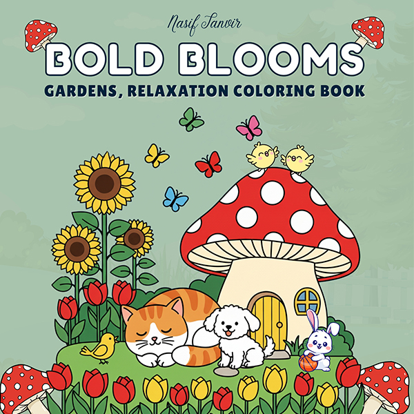 Plant and Flower Bold and Easy: Relaxing Blooms and Cute Animals in Simple Garden Scenes Coloring Book for Adults and Teens